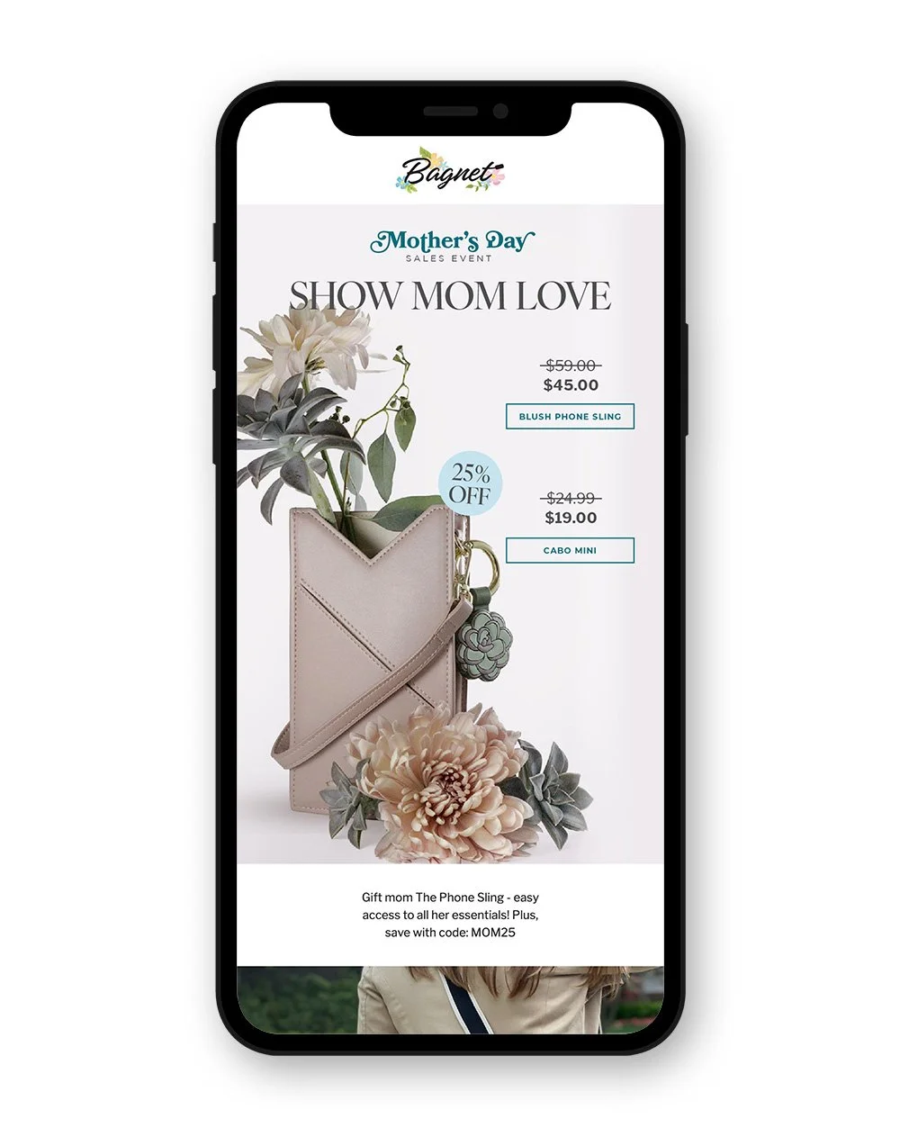 Create a cohesive look and feel for Bagnet’s Mother’s Day Sale that can be used across marketing emails, texts, the website, social media posts, and paid social ads.