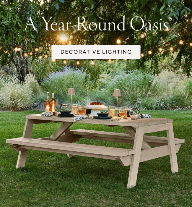 Market Pottery Barn Spring 2024 outdoor collections, aligning with the outdoor catalog and look book.
